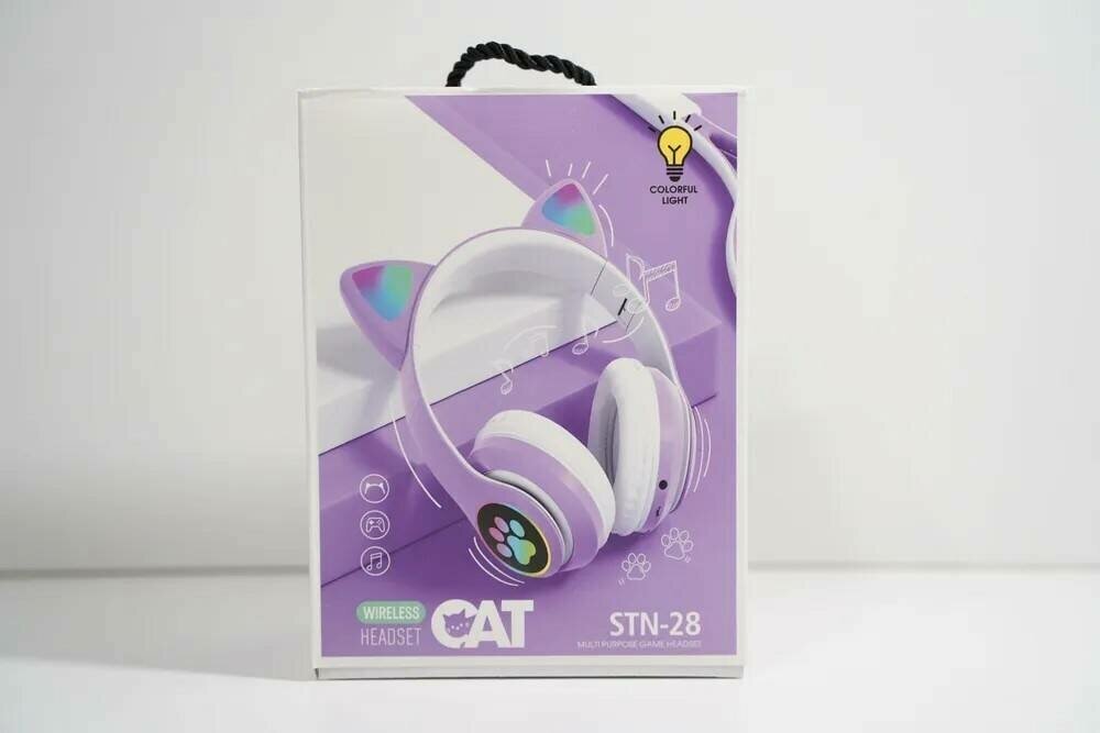 Наушники беспроводные светящиеся с ушками STN-28, фиолетовые