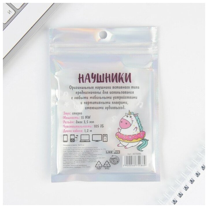 Like me Наушники в пакете, «Единорог», вакуумные, черные интересное: