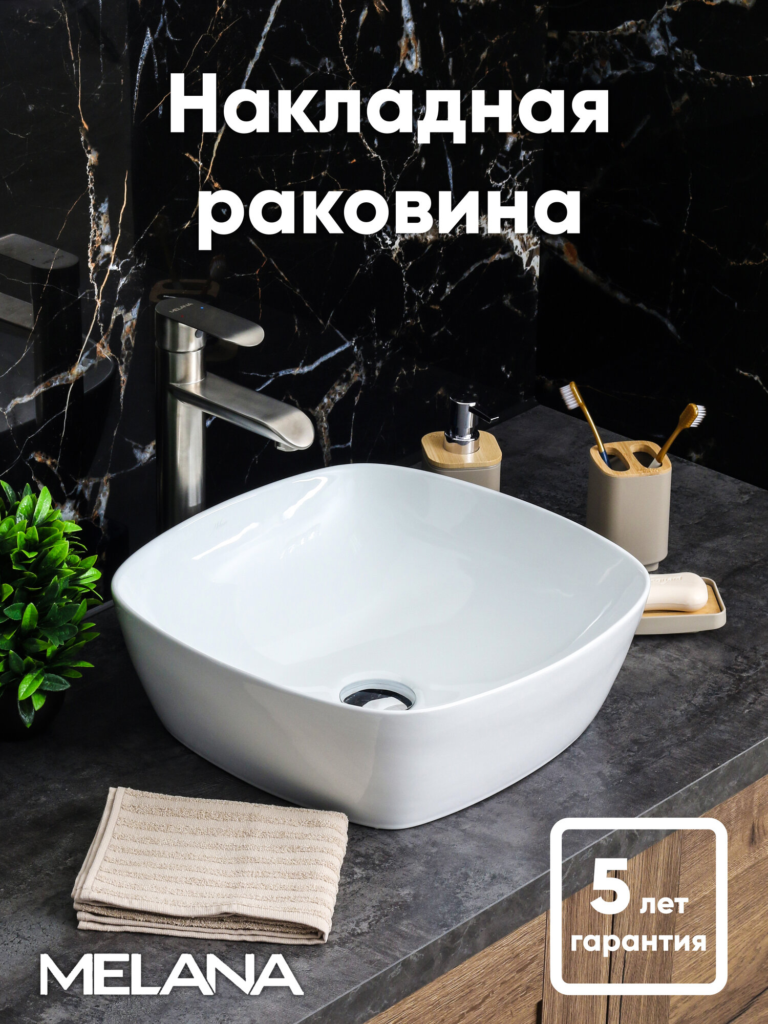 Раковина Melana MLN-A500C, накладная, фаянс, белая, квадратная