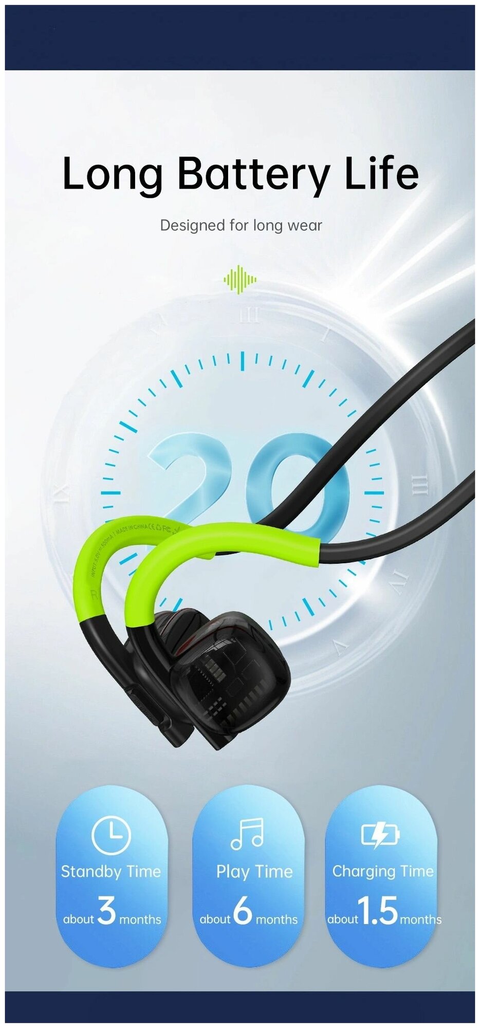 Наушники беспроводные, спортивные WiWU Marathon Pro с воздушной проводимостью - Зеленые
