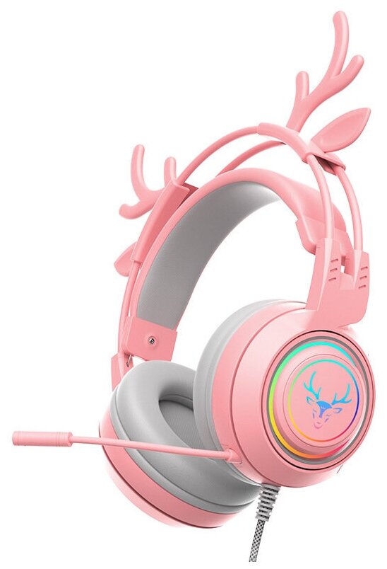Купить Наушники игровые большие с ушками, с подсветкой и шумоподавлением розовые