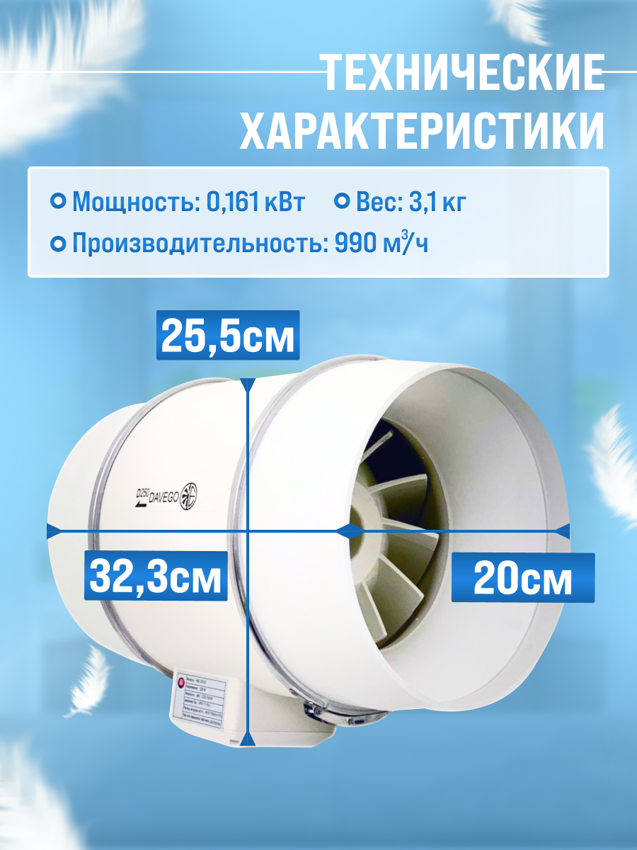 Канальный вентилятор пластиковый HZ-200 DAVEGO интересное: