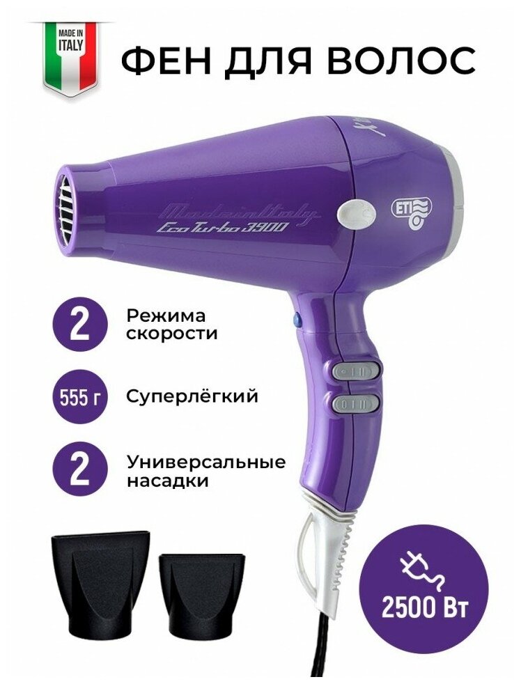 Купить Фен ETI Eco Turbo 3900 Xtrapower 2500 ватт, фиолетовый