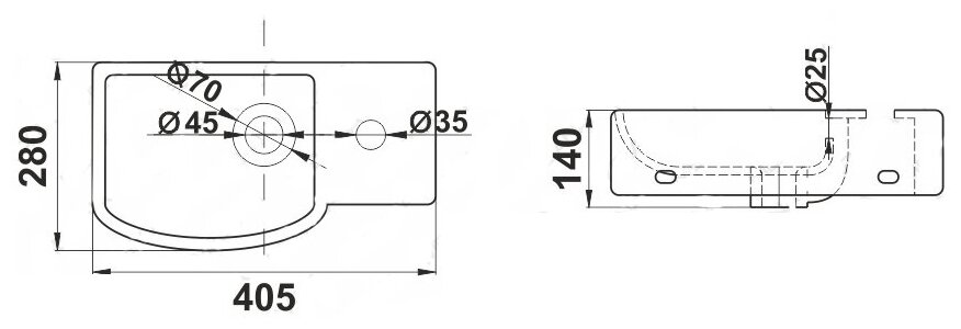 | Отверстия под смеситель | 1, расположение справа |