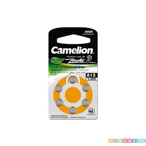 Camelion ZA13 BL-6 Mercury Free A13-BP6 0%Hg , батарейка для слуховых аппаратов, 1.4 V,280mAh 6 шт. в уп-ке