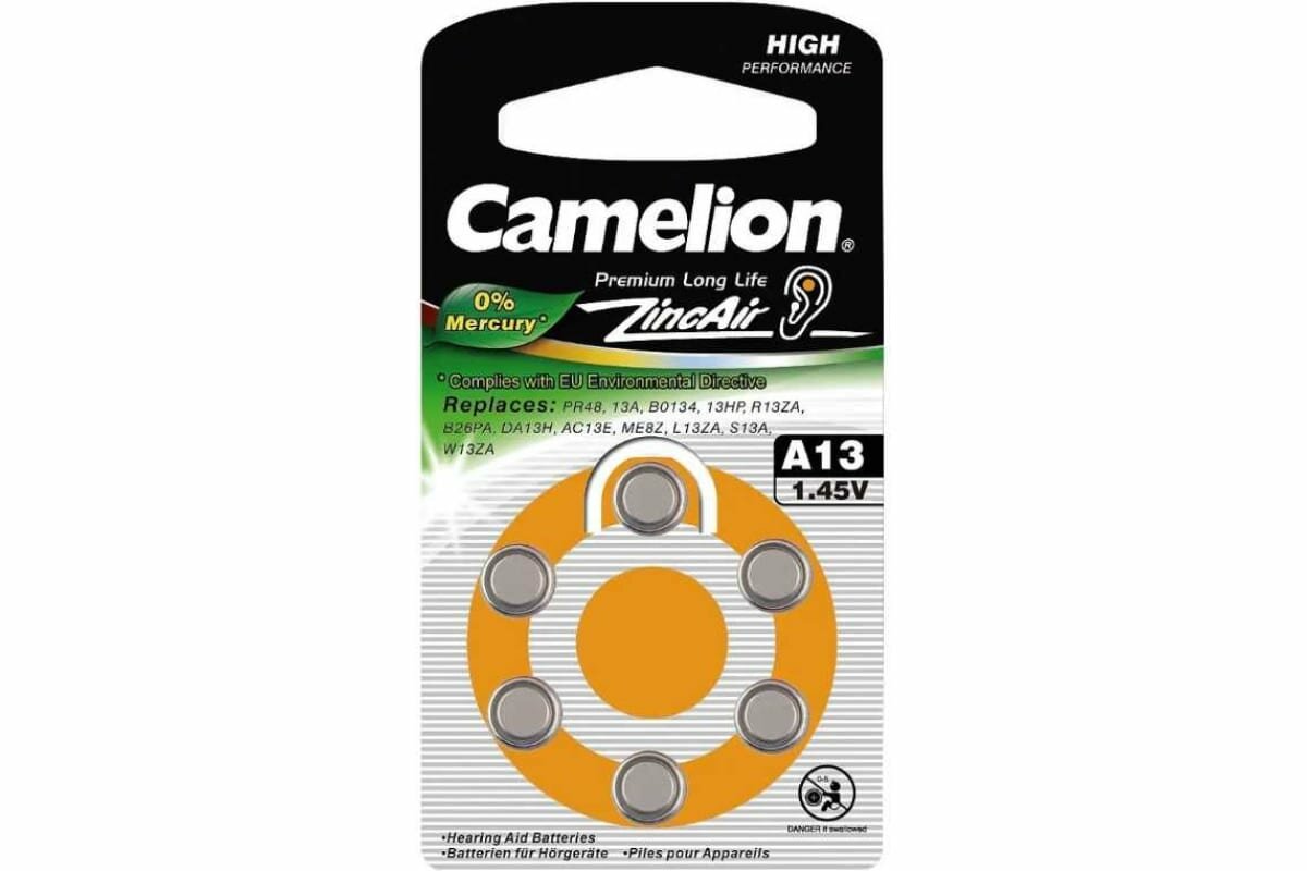 Батарейка Camelion A13 (PR48), 6 шт., А13 для слуховых аппаратов