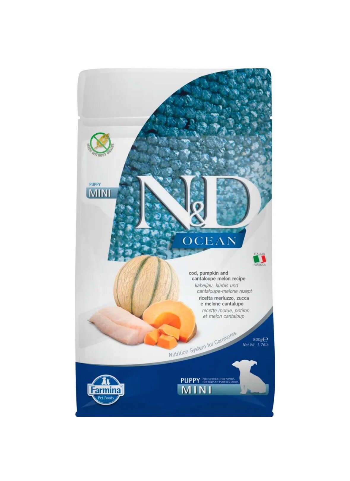 FARMINA DOG N&D OCEAN PUPPY MINI COD, PUMPKIN & CANTALOUPE MELON беззерновой для щенков маленьких пород с треской, тыквой и дыней (0,8 кг)