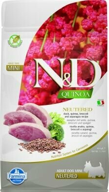 Farmina N&D Quinoa Dog Neutered Mini сухой беззерновой корм для стерилизованных собак мелких пород с уткой, киноа, брокколи и спаржей - 800 г
