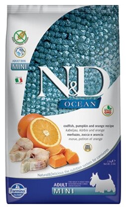 FARMINA Сухой беззерновой корм для собак мелких пород OCEAN LINE треска с тыквой и апельсином 11227 0,8 кг 38897 (2 шт) интересное: