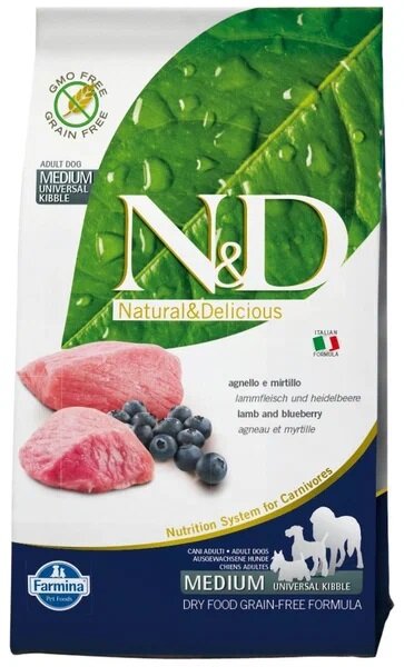 Сухой корм для собак Farmina N&D Prime Adult Medium & Maxi беззерновой с ягненком и черникой 12 кг интересное:
