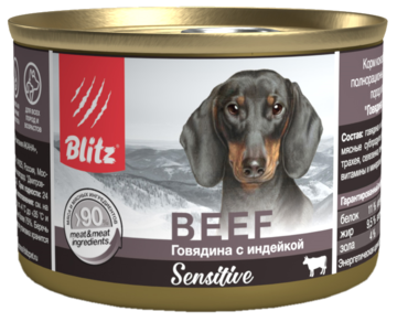 Корм Blitz Sensitive Beef (консерв.) для собак, говядина с индейкой, 400 г x 12 шт интересное: