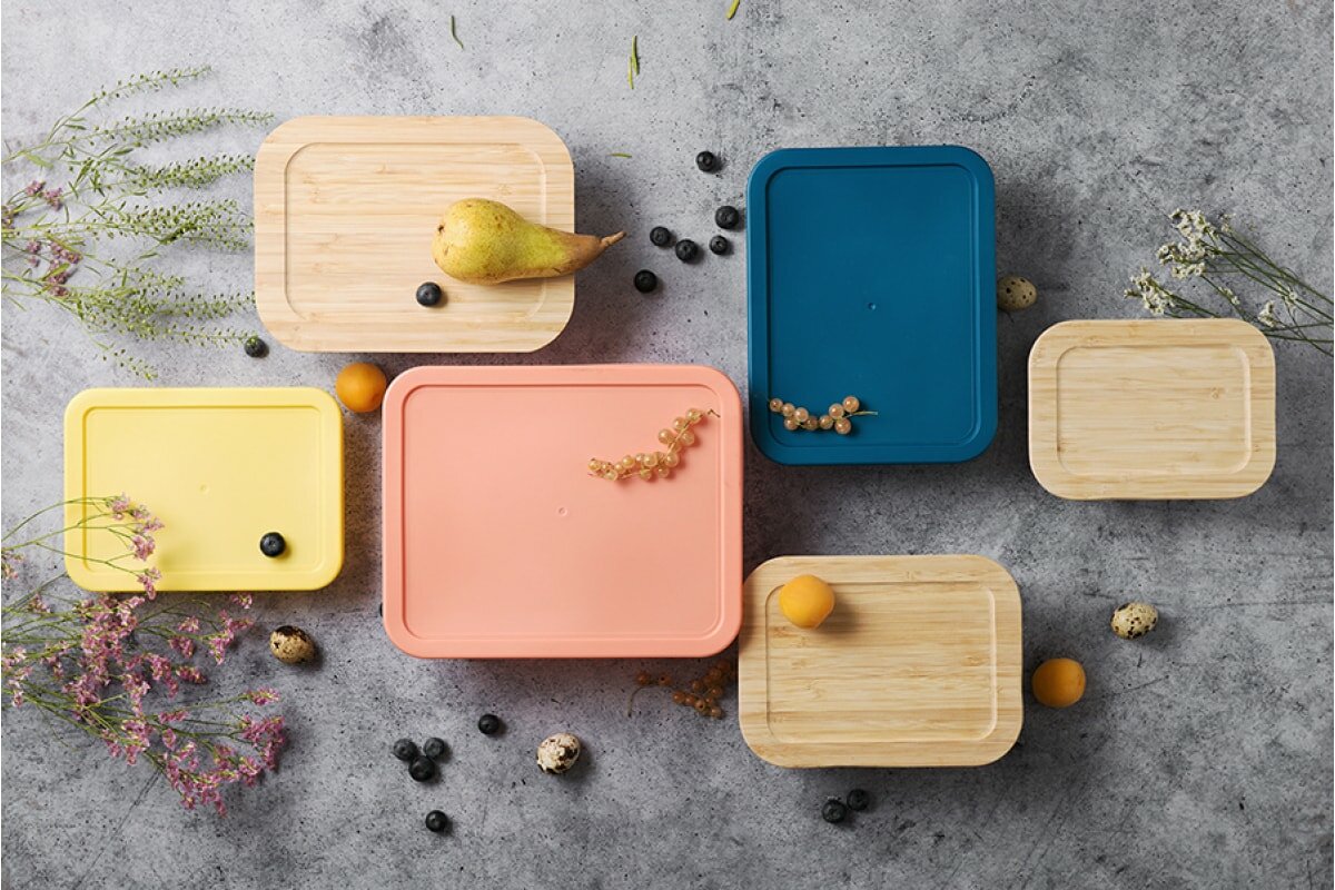 Набор контейнеров Smart Solutions для запекания и хранения с крышками из бамбука, 3 шт.