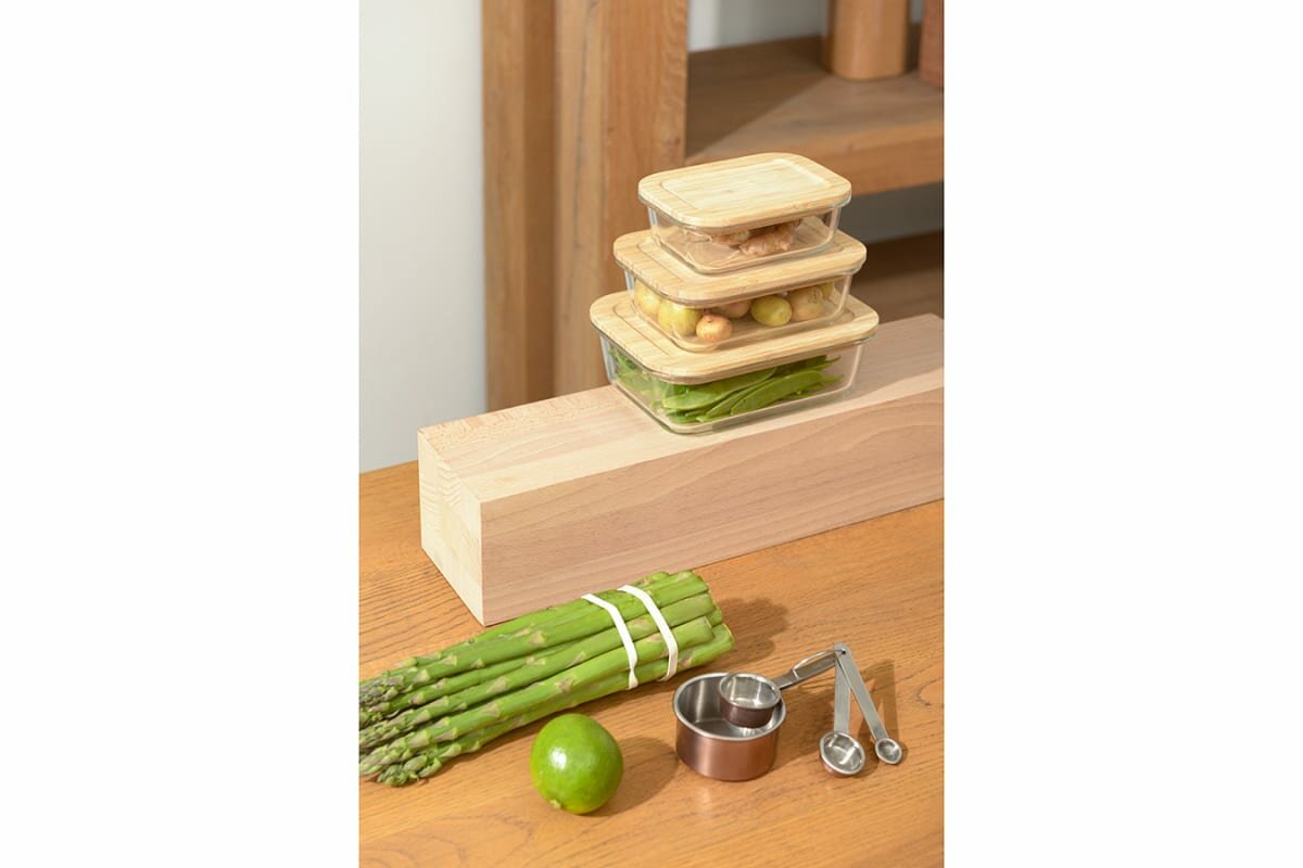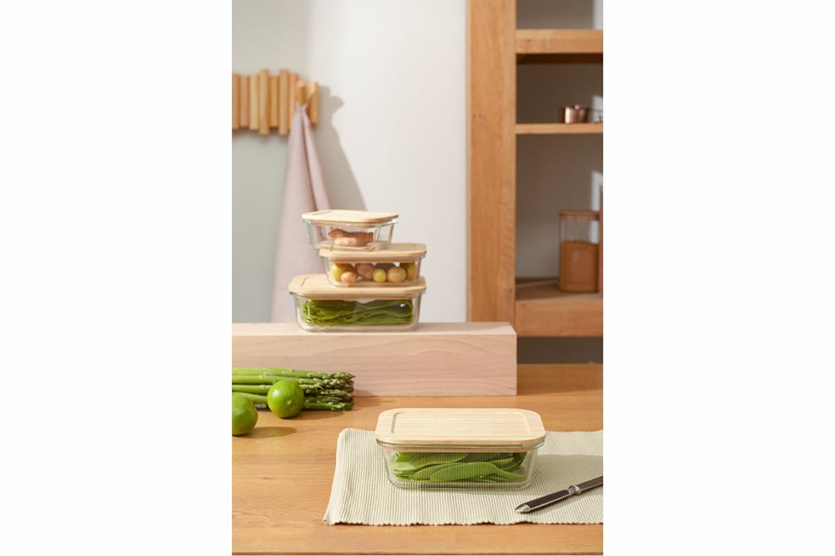 Набор стеклянных прямоугольных контейнеров Smart Solutions с бамбуковыми крышками, 3 шт. (SFE-SS-CN-GLS-BM-RC1.05)