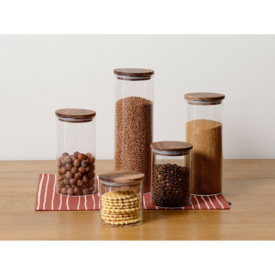 Банка 650 мл для хранения сыпучих продуктов стеклянная с крышкой из акации Smart Solutions XS9513