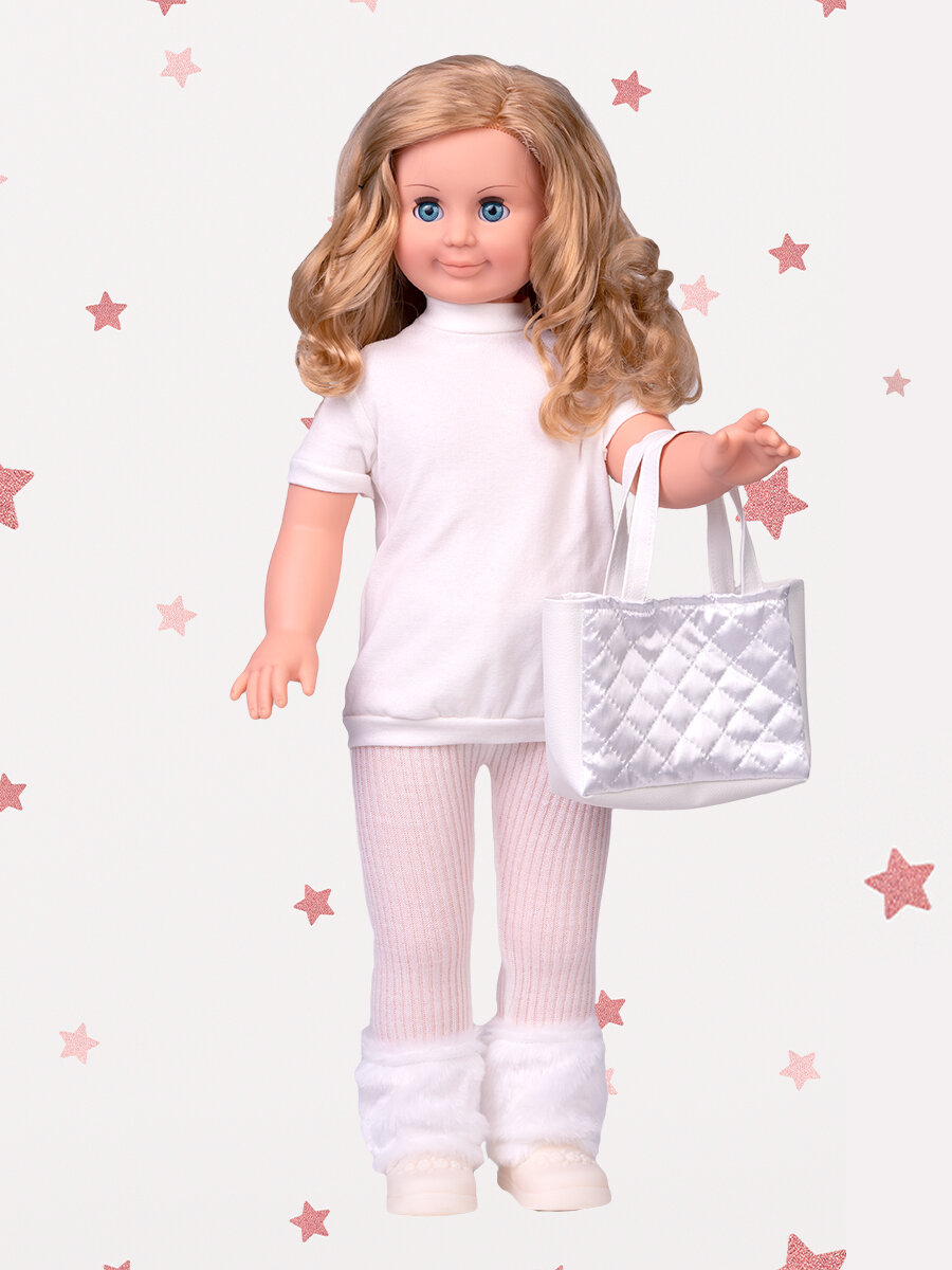 | Плюсы: | Прекрасная кукла отечественного производства. Качественно выполнены все детали. Никаких посторонних запахов. Отлично отшита одежда, аккуратно и красиво прострочена, все проработано просто на отлично. Чудесный белоснежный зимний наряд, словно костюм Снегурочки. Волосы, одежда, обувь и аксесуары - все понравилось. Кукла разговаривает. Имеется паспорт изделия. |