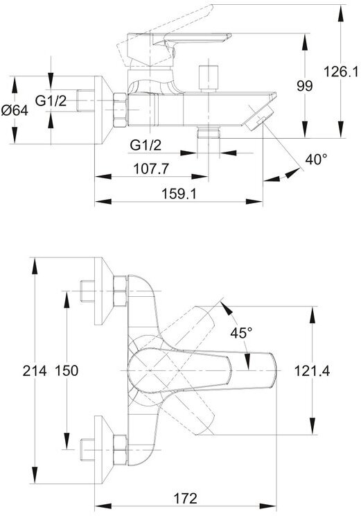 Смеситель для ванны Cersanit VERO однорычажный 63061