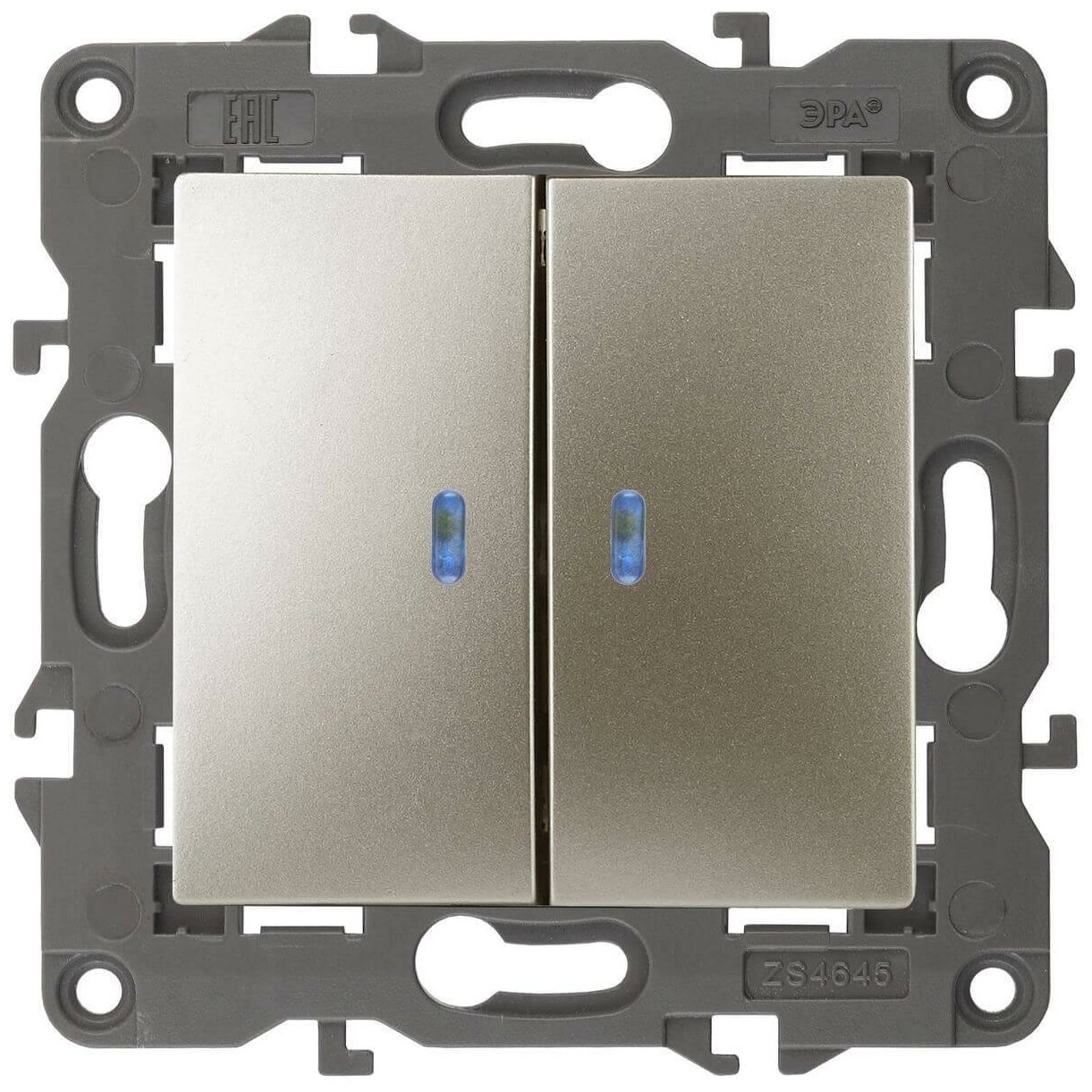 Купить Выключатель двухклавишный с подсветкой ЭРА Elegance 10AX 250V 14-1105-04 Б0034240