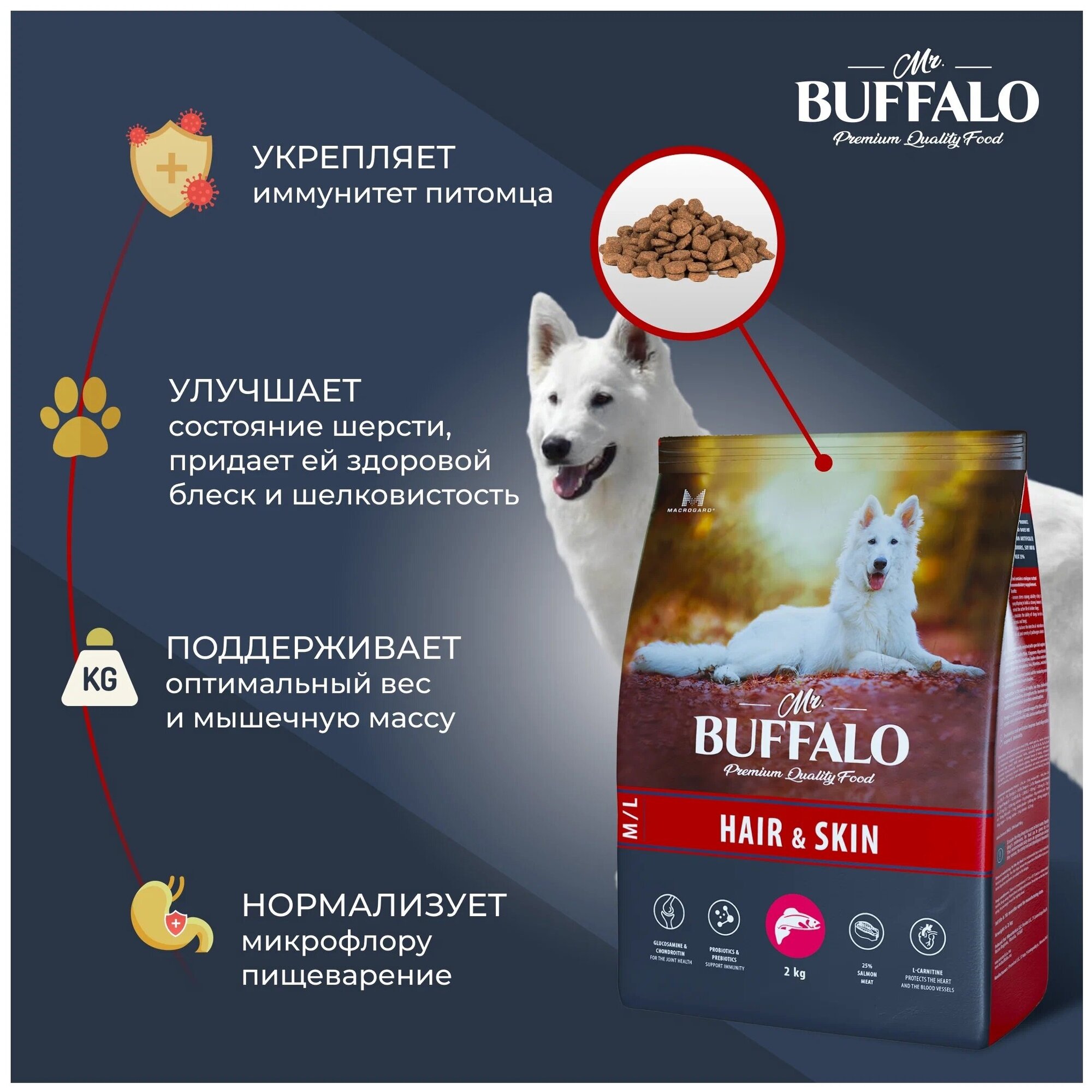 Mr.Buffalo корм для собак средних и крупных пород Hair&Skin с лососем 2 кг интересное: