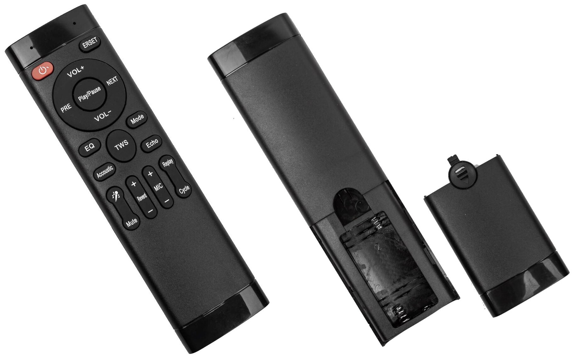 | Подробная комплектация | динамик 1 шт., микрофон 2 шт., антиролл для микрофона от предотвращения скатывания микрофона с плоской поверхности 2 шт., пульт ДУ 1 шт., кабель для зарядки USB - Type-C 55 см. 1 шт., AUX кабель джек 3,5 мм. 3-pin - джек 3,5 мм. 3-pin 55 см. 1 шт., ручка для транспортировки 1 шт., фирменная коробка с ручкой для переноски |
