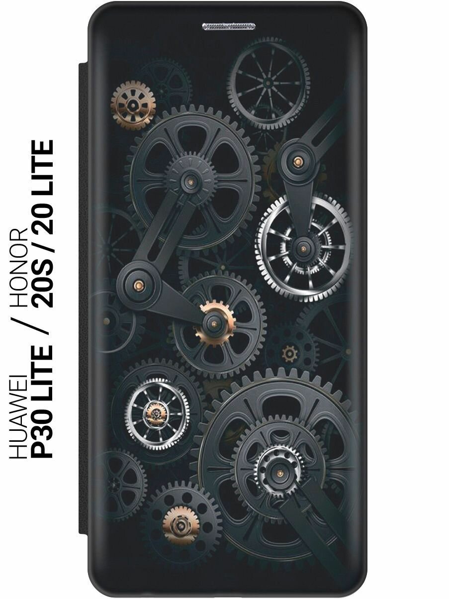 Чехол-книжка на Honor 20 Lite, 20s, Huawei P30 Lite, Хуавей П30 Лайт, Хонор 20 Лайт, 20s c принтом "Механизм" черный