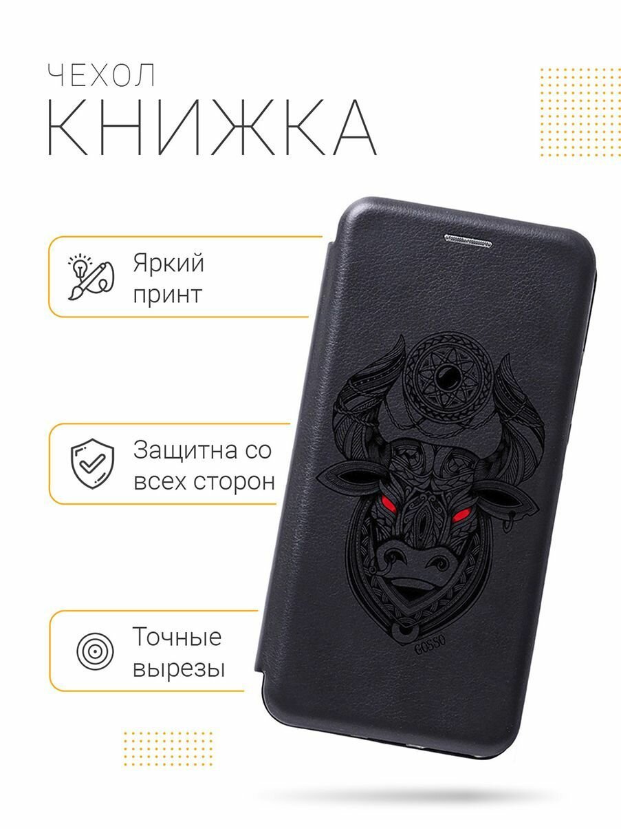 Чехол-книжка на Honor 20 Lite / 20s / Huawei P30 Lite / Хуавей П30 Лайт / Хонор 20 Лайт / 20s с 3D принтом "Grand Bull" черный интересное: