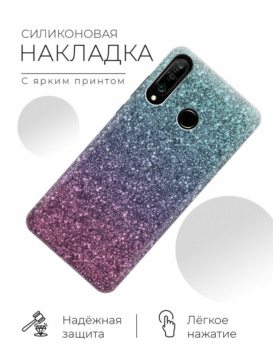 Купить Силиконовый чехол Сине-розовые блестки на Huawei P30 Lite / Honor 20 Lite / Honor 20s / Хуавей П30 Лайт / Хонор 20 Лайт / Хонор 20s