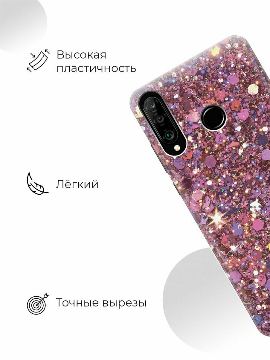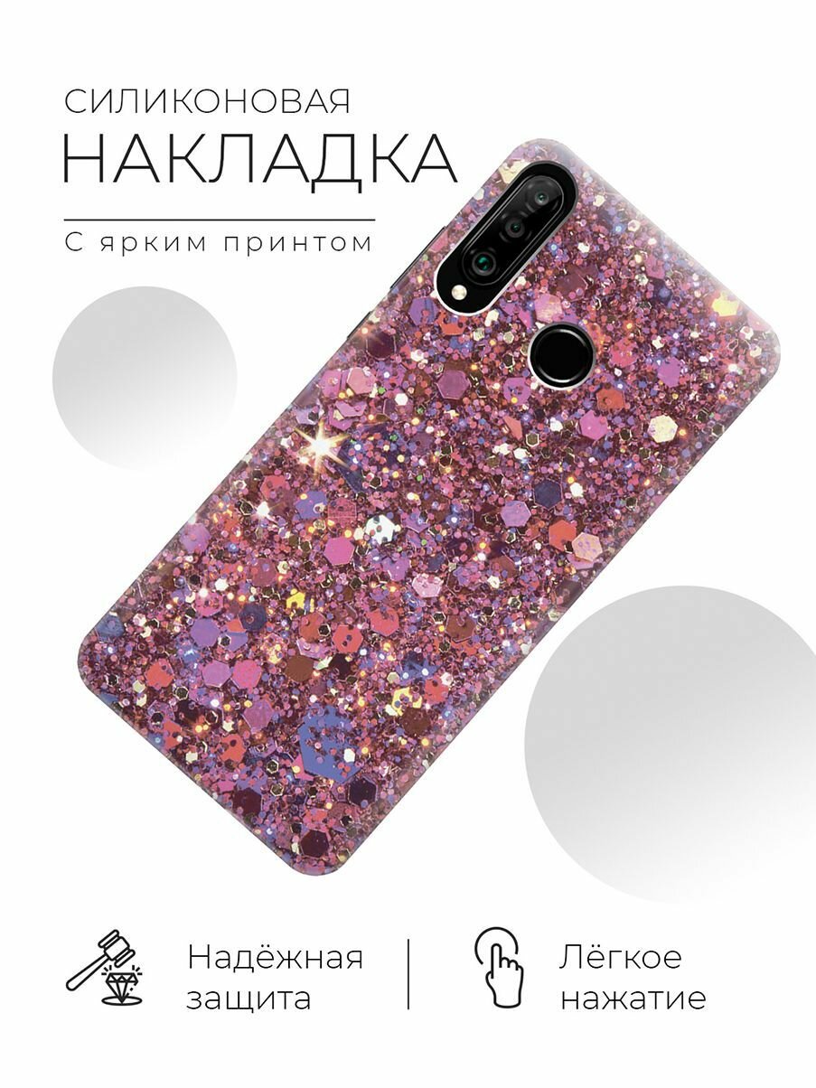 Купить Силиконовый чехол Розовые пайетки на Huawei P30 Lite / Honor 20 Lite / Honor 20s / Хуавей П30 Лайт / Хонор 20 Лайт / Хонор 20s