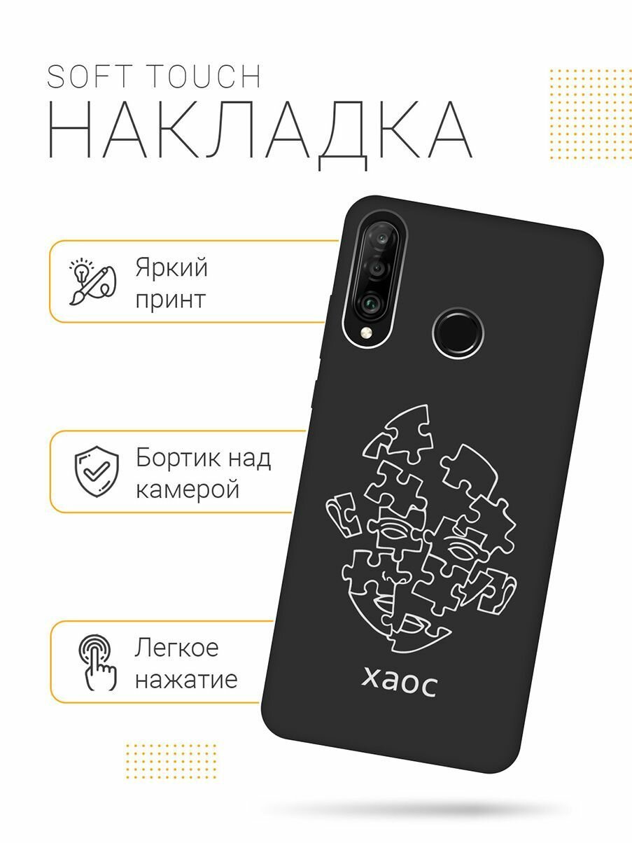 СохранитьМатовый Soft Touch силиконовый чехол на Honor 20 Lite / 20s / Huawei P30 Lite / Хуавей П30 Лайт / Хонор 20 Лайт / 20s с 3D принтом "Chaos W" черный интересное: