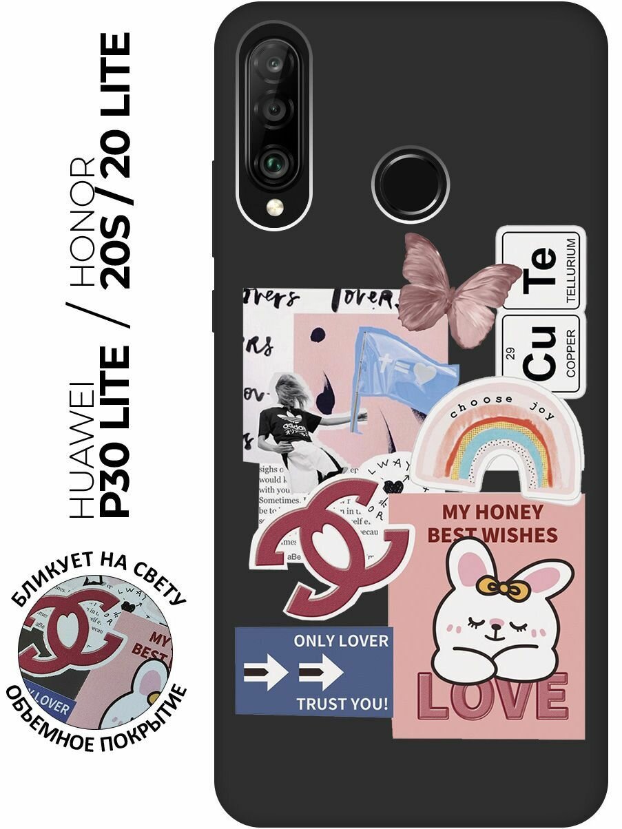 Купить Матовый чехол Cute Stickers для Honor 20 Lite / 20s / Huawei P30 Lite / Хуавей П30 Лайт / Хонор 20 Лайт / 20s с 3D эффектом черный