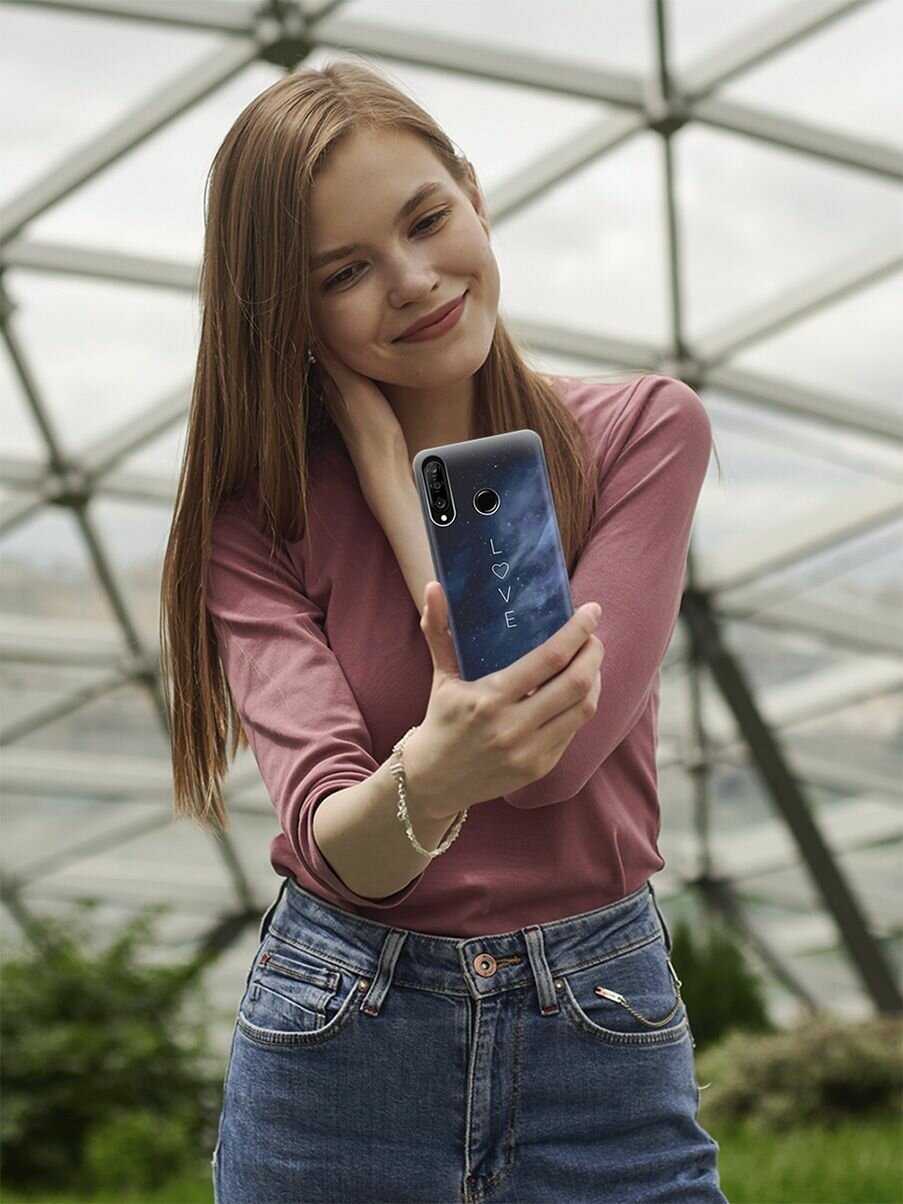 СохранитьСиликоновый чехол на Honor 20 Lite / 20s / Huawei P30 Lite / Хуавей П30 Лайт / Хонор 20 Лайт / 20s с принтом "Ночное небо и любовь" интересное: