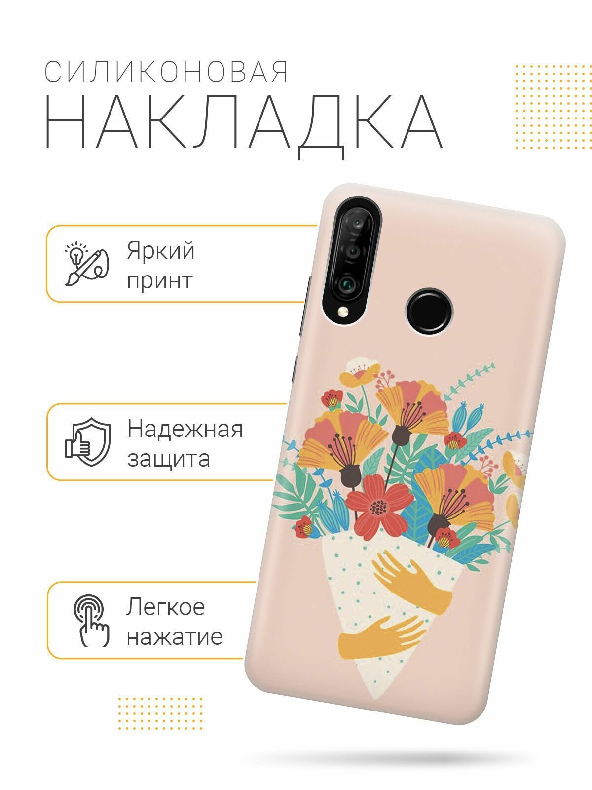 Силиконовый чехол на Honor 20 Lite, 20s, Huawei P30 Lite, Хуавей П30 Лайт, Хонор 20 Лайт, 20s с принтом "Букет на розовом"