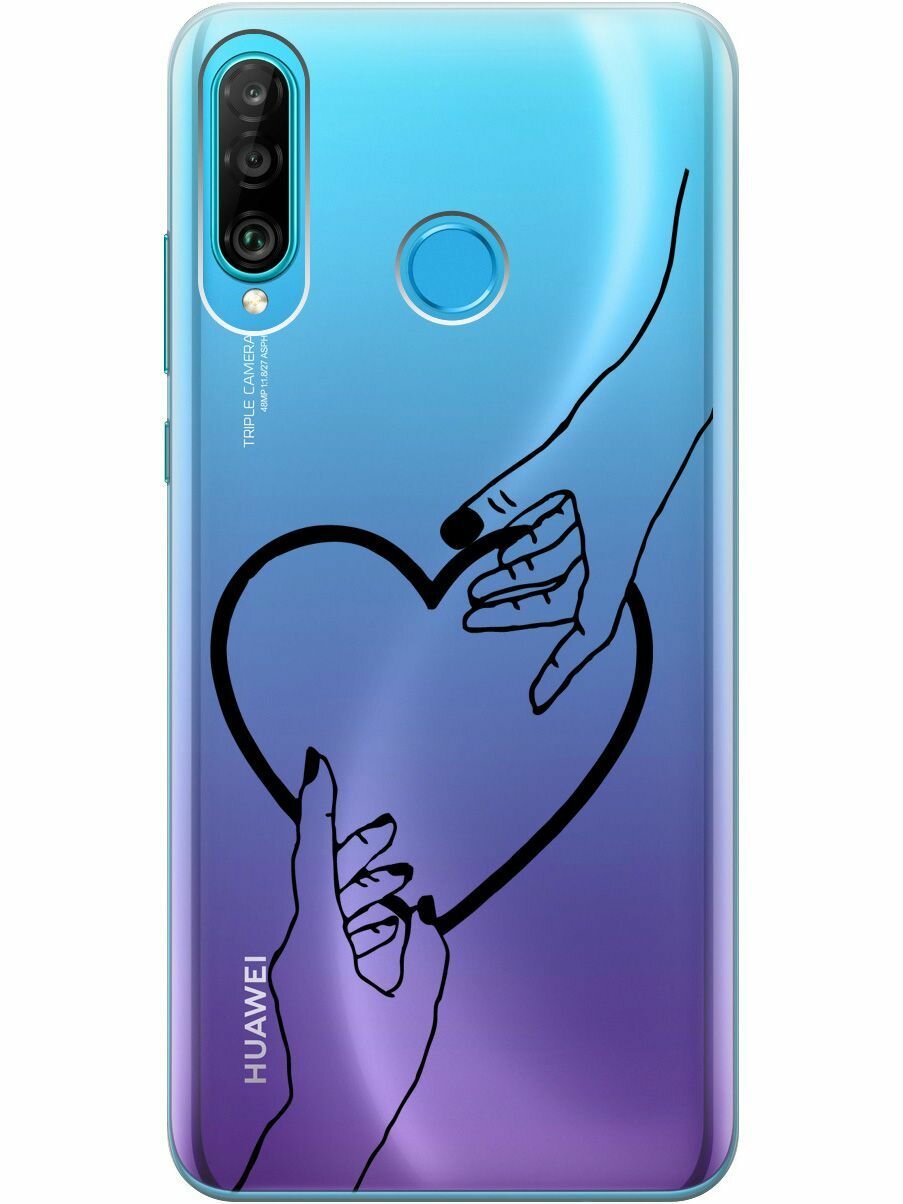 Силиконовый чехол на Honor 20 Lite / 20s / Huawei P30 Lite / Хуавей П30 Лайт / Хонор 20 Лайт / 20s с 3D принтом "Lovers Hands" прозрачный