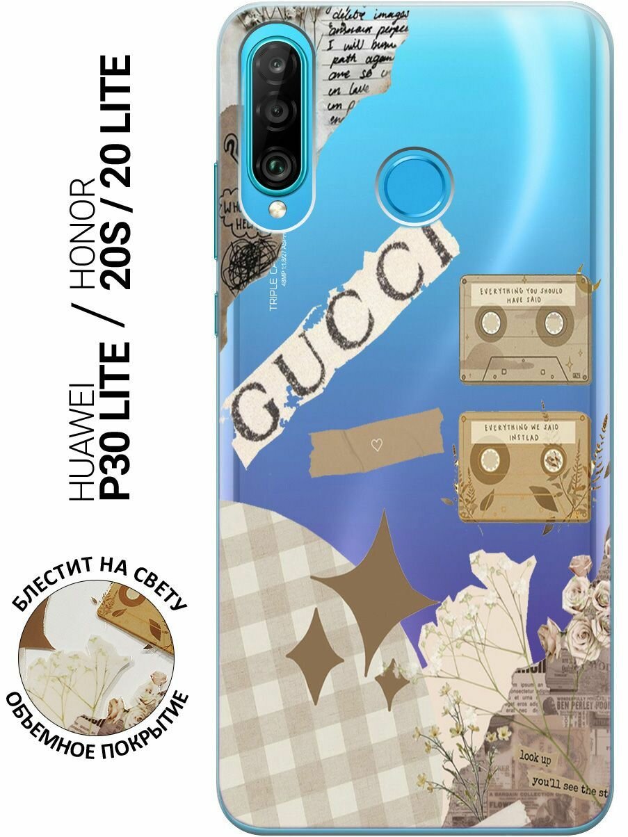 Силиконовый чехол на Honor 20 Lite, 20s, Huawei P30 Lite, Хуавей П30 Лайт, Хонор 20 Лайт, 20s с 3D принтом "GUCCI Stickers" прозрачный