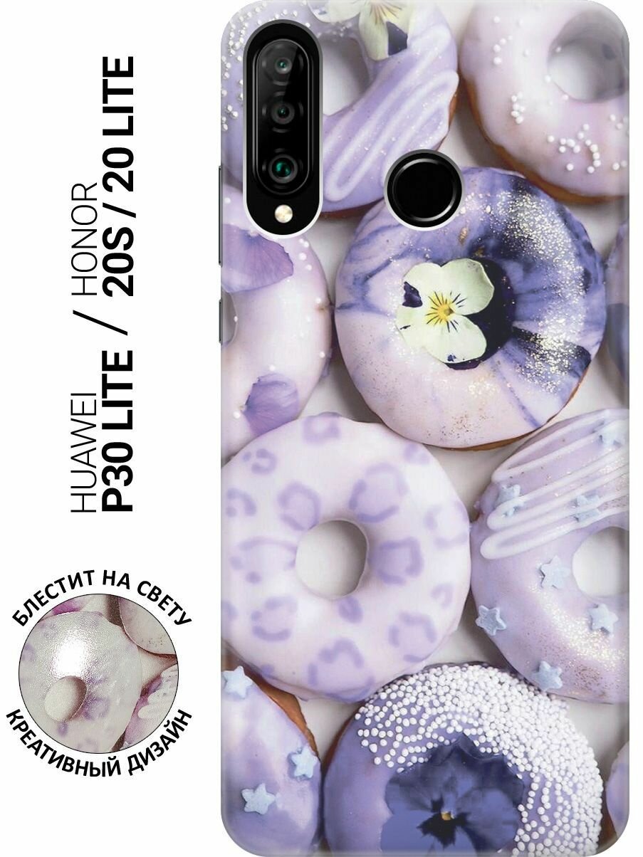 Силиконовый чехол на Huawei P30 Lite, Honor 20 Lite, Honor 20s, Хуавей П30 Лайт, Хонор 20 Лайт, Хонор 20s с эффектом блеска "Лавандовые пончики"