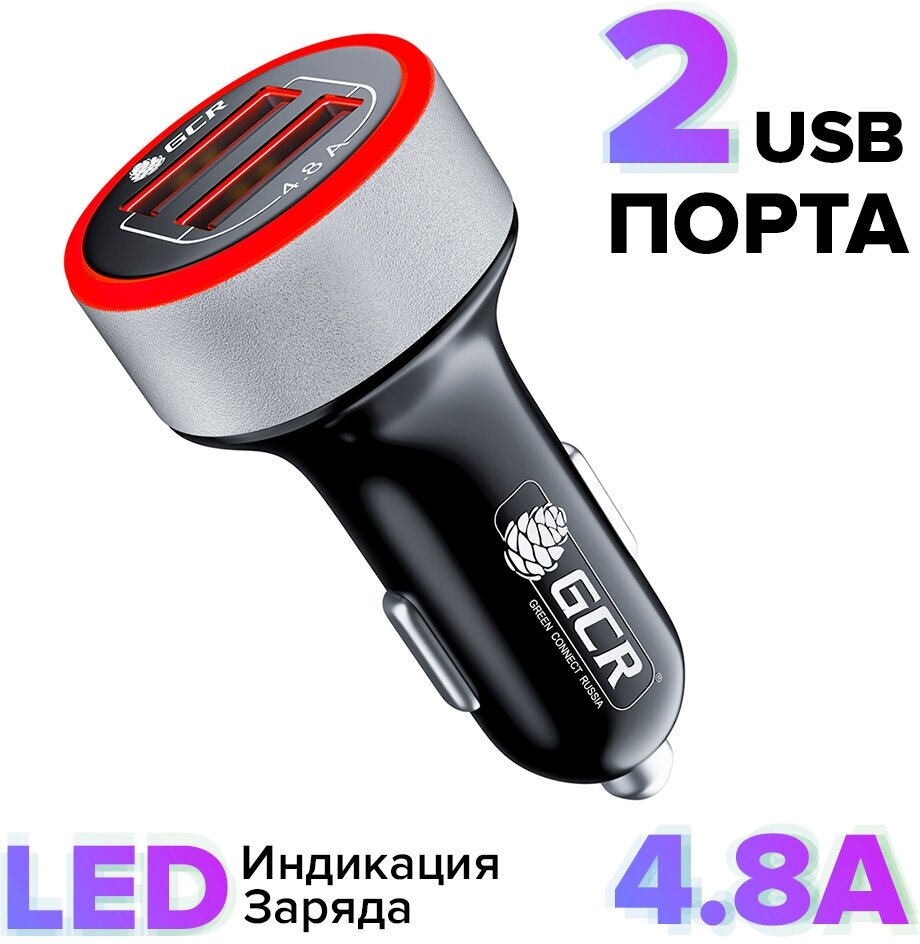 Автомобильное зарядное устройство GCR GCR-53047 на 2 USB порта 4.8A, черная, LED индикация