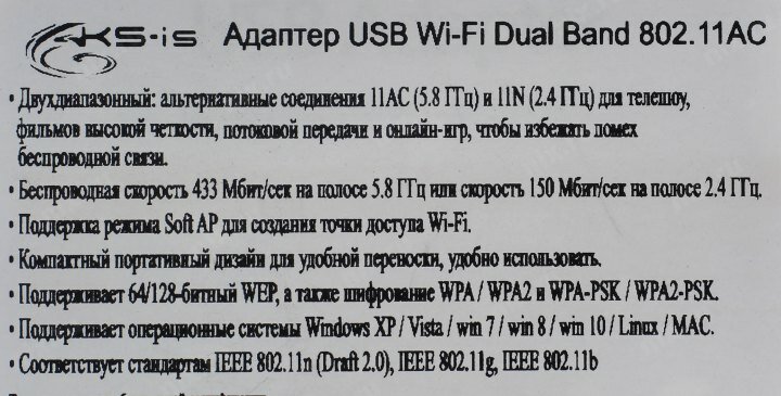 Wi-Fi адаптер KS-is KS-407 интересное: