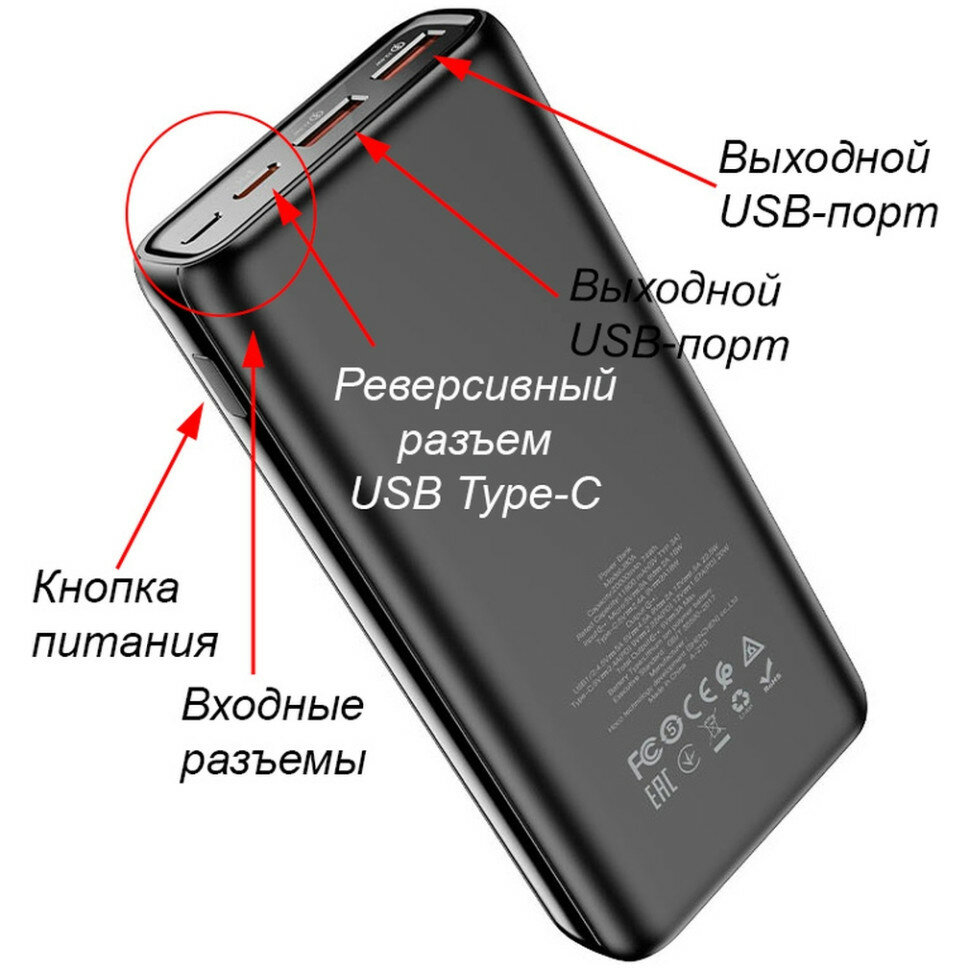 Внешний аккумулятор Hoco Power Bank J80A Premium 22.5W 20000mAh Black интересное: