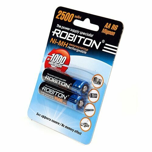 Ni-Mh аккумуляторы ROBITON 2500MHAA-2 BL-2 8793, 1.2В, 2500мАч, размер АА (HR6), металлогидридные, 2шт в упаковке
