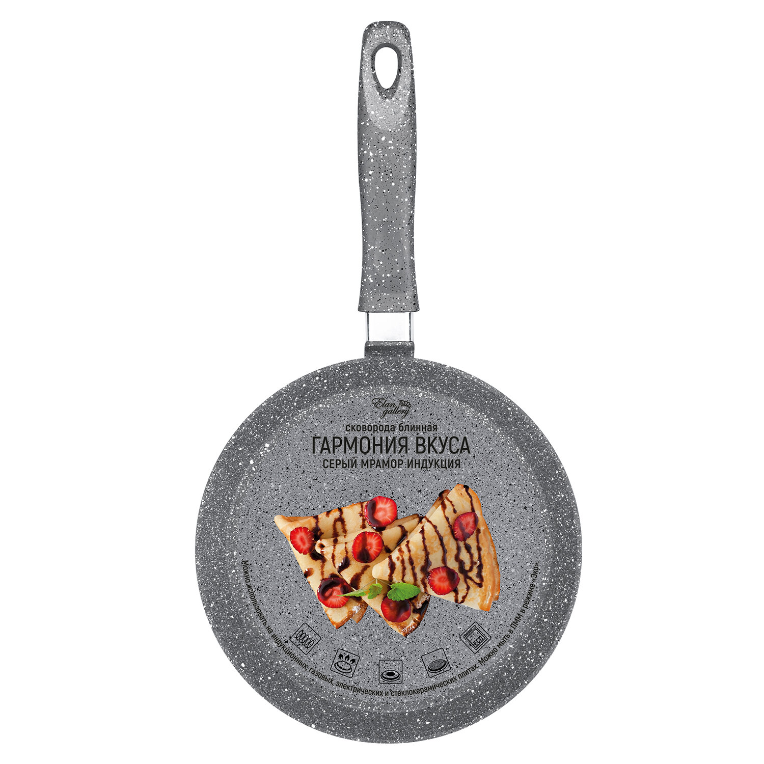 Купить Сковорода блинная 22 см Elan Gallery гармония вкуса Серый мрамор индукция, с несъёмной ручкой