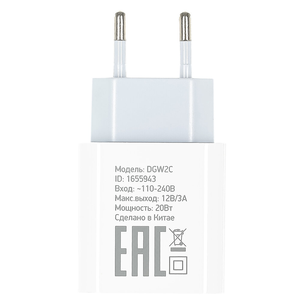 Купить Сетевое зарядное устройство Digma DGW2C, USB-C, 3A, белый [dgw2c0f010wh]