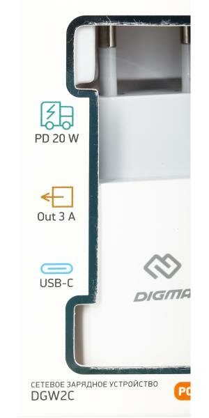 Сетевое зарядное устройство Digma DGW2C, USB-C, 20Вт, 3A, белый [dgw2c0f010wh]