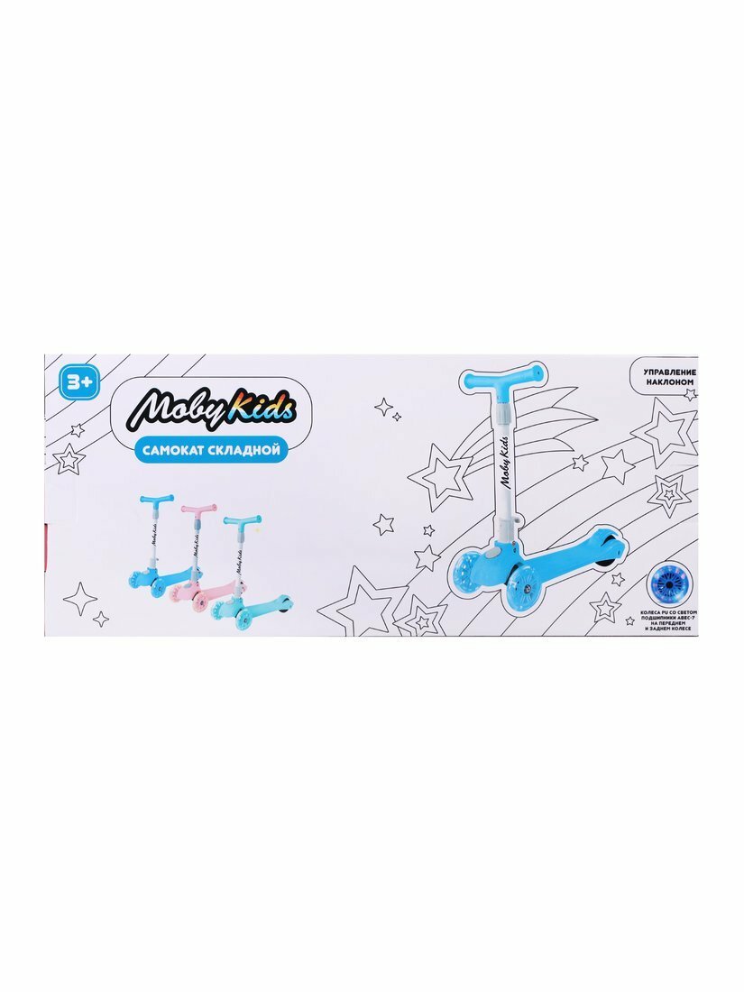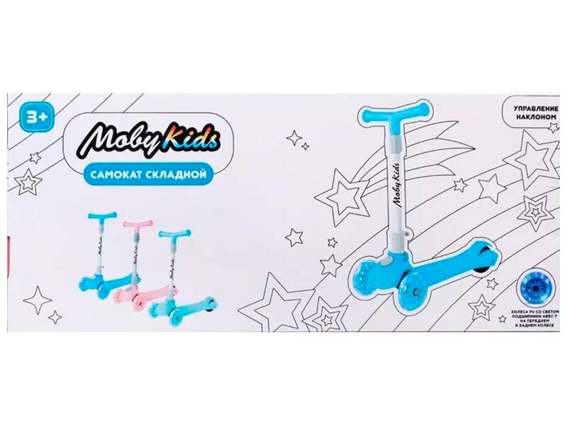 Самокат Moby Kids FLY, складной, 120 PU со светом, синий (арт.64695) интересное: