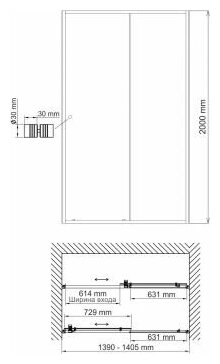 Душевая дверь WasserKRAFT Dill 140 61S31 профиль Черный матовый стекло прозрачное