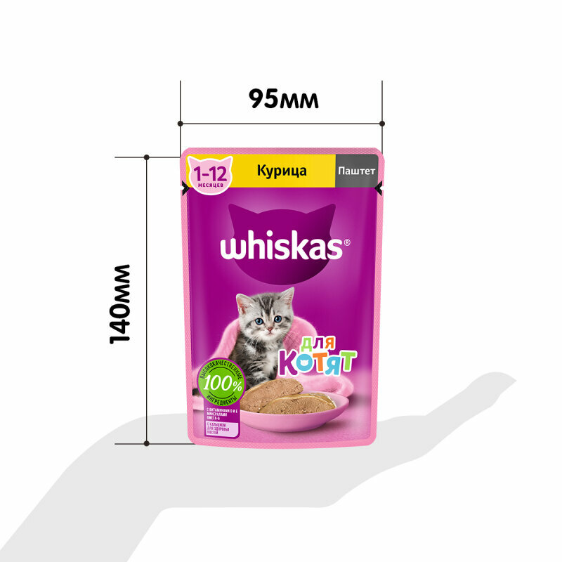 Влажный корм Whiskas для котят от 1 до 12 месяцев, паштет с курицей, 24 шт по 75 г