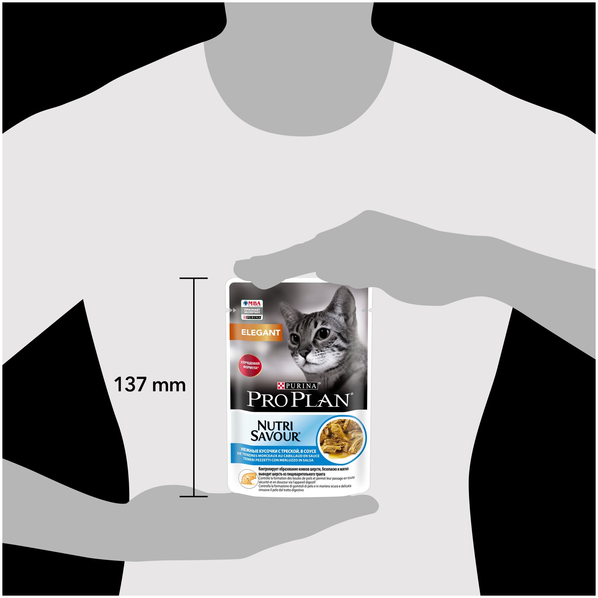 Корм для кошек PRO PLAN Elegant для здоровья кожи и шерсти, с треской в соусе пауч 85г (упаковка - 26 шт)