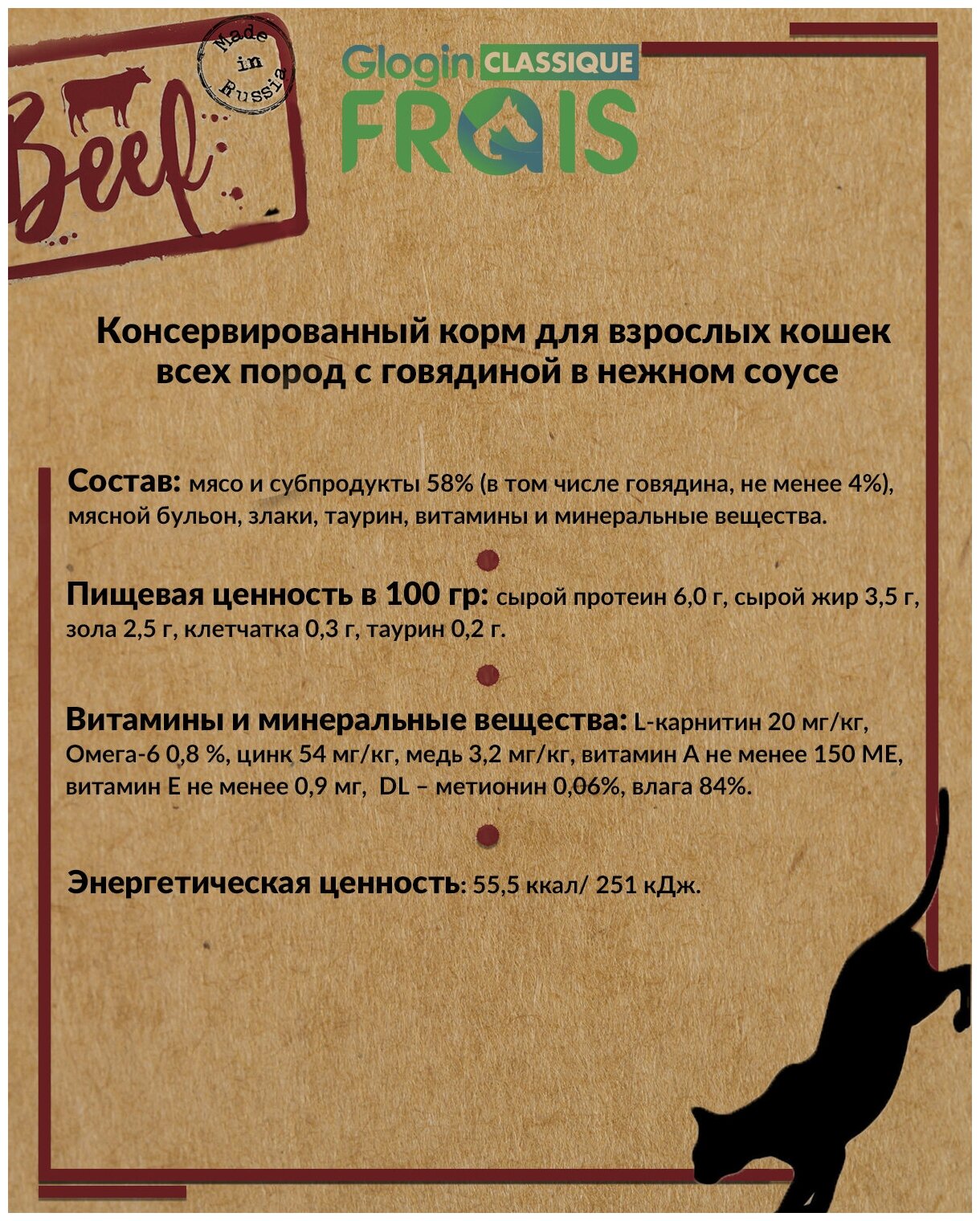 FRAIS CLASSIQUE паучи для взрослых кошек микс: С ГОВЯДИНОЙ-4ШТ, С ЯГНЕНКОМ-4ШТ, 85 Гх упаковка 8 ШТ интересное: