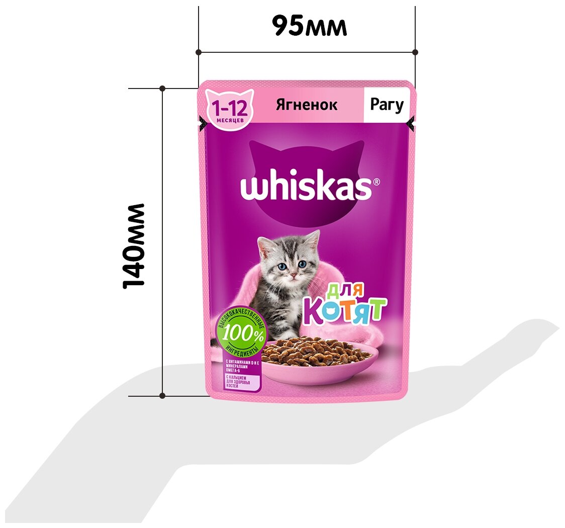Whiskas влажный корм для котят от 1 до 12 месяцев, рагу с ягненком, в паучах - 75 г х 28 шт