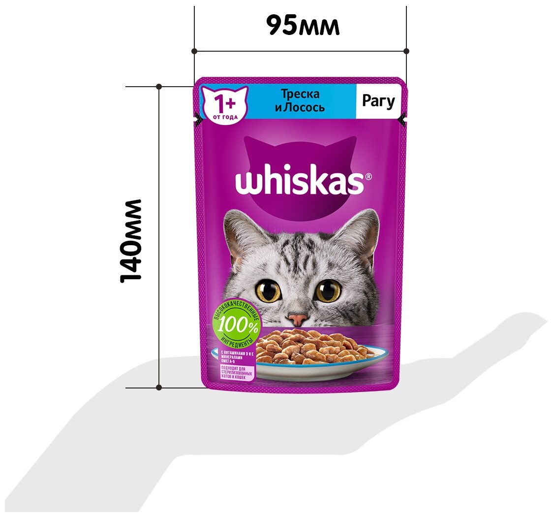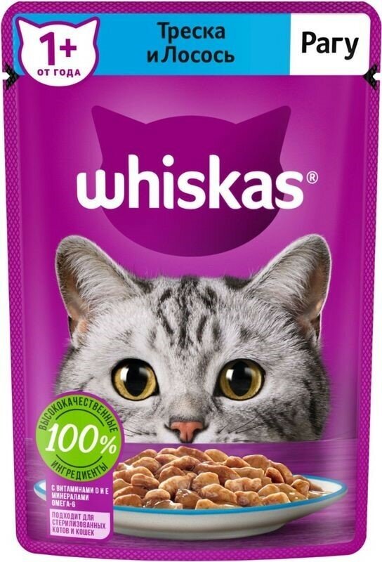 Влажный корм Whiskas для кошек, рагу с треской и лососем, 75 г х 28 шт