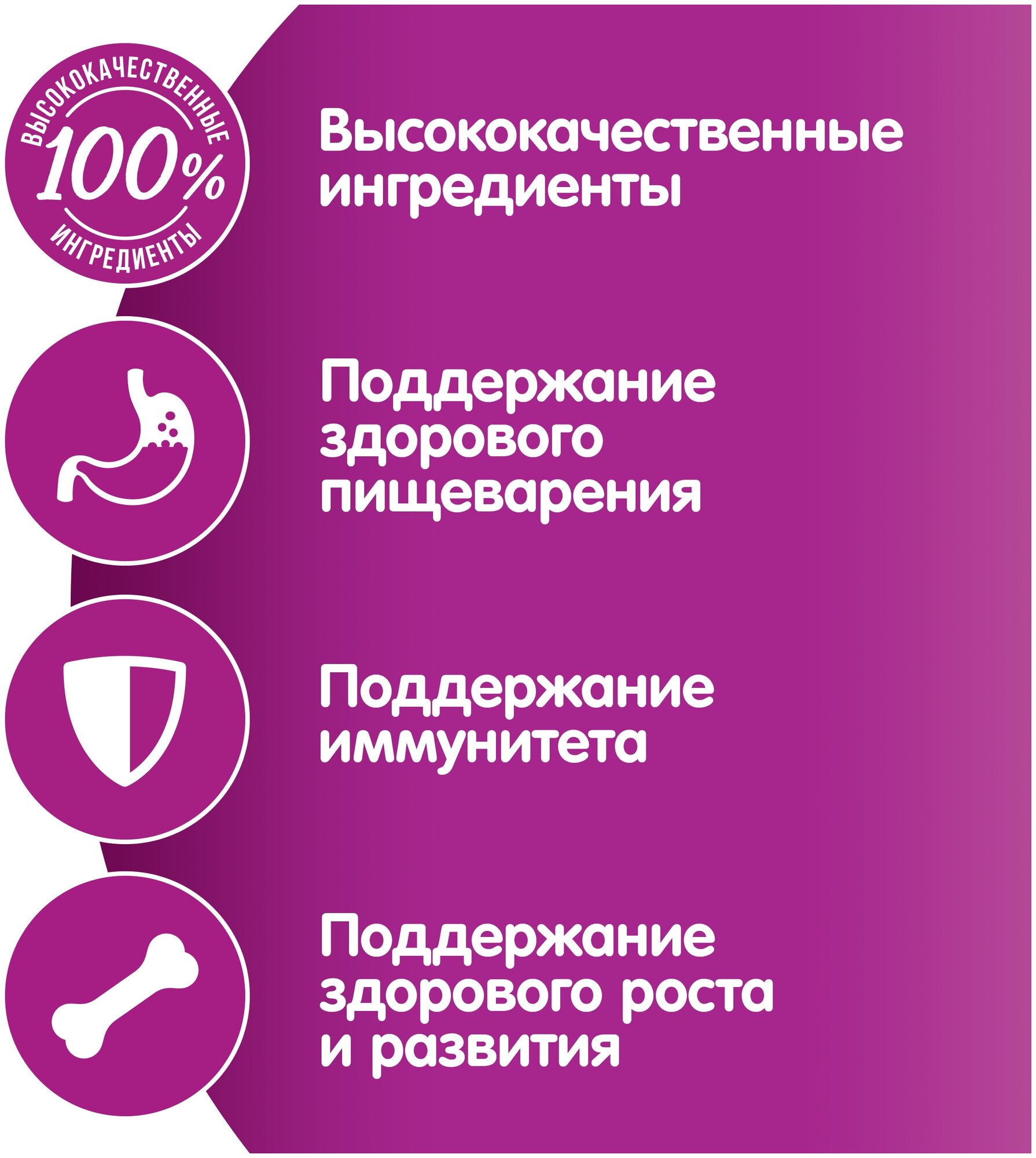 | Состав | мясо и субпродукты (в том числе телятина), продукты животного происхождения, пшеничная мука, аминокислоты (в том числе таурин), минеральные вещества, загустители, растительное масло, витамины, свекловичный жом, сахара, натуральный краситель. |