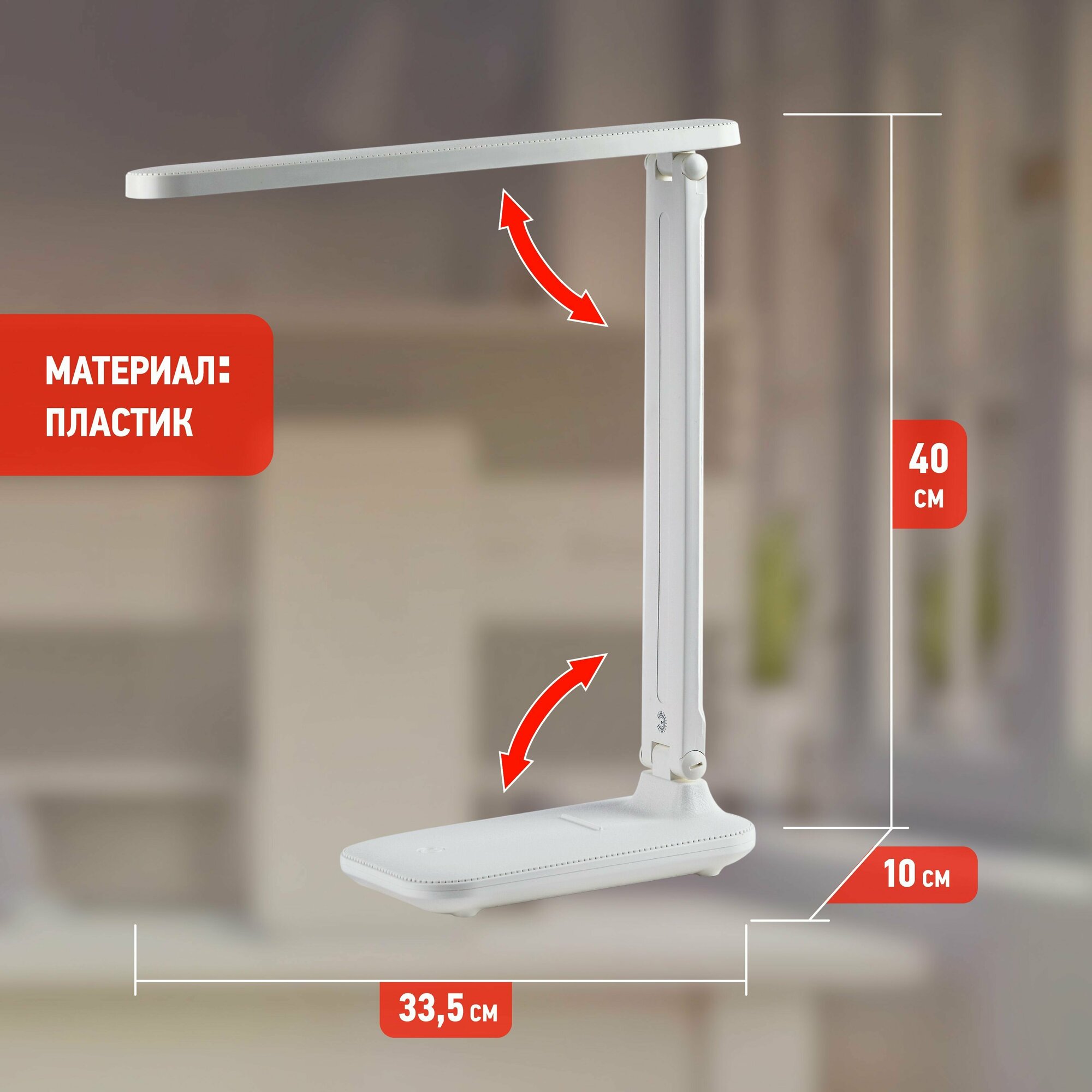 Лампа настольная светодиодная офисная для школьника ЭРА NLED-495-5W-W с регулировкой яркости